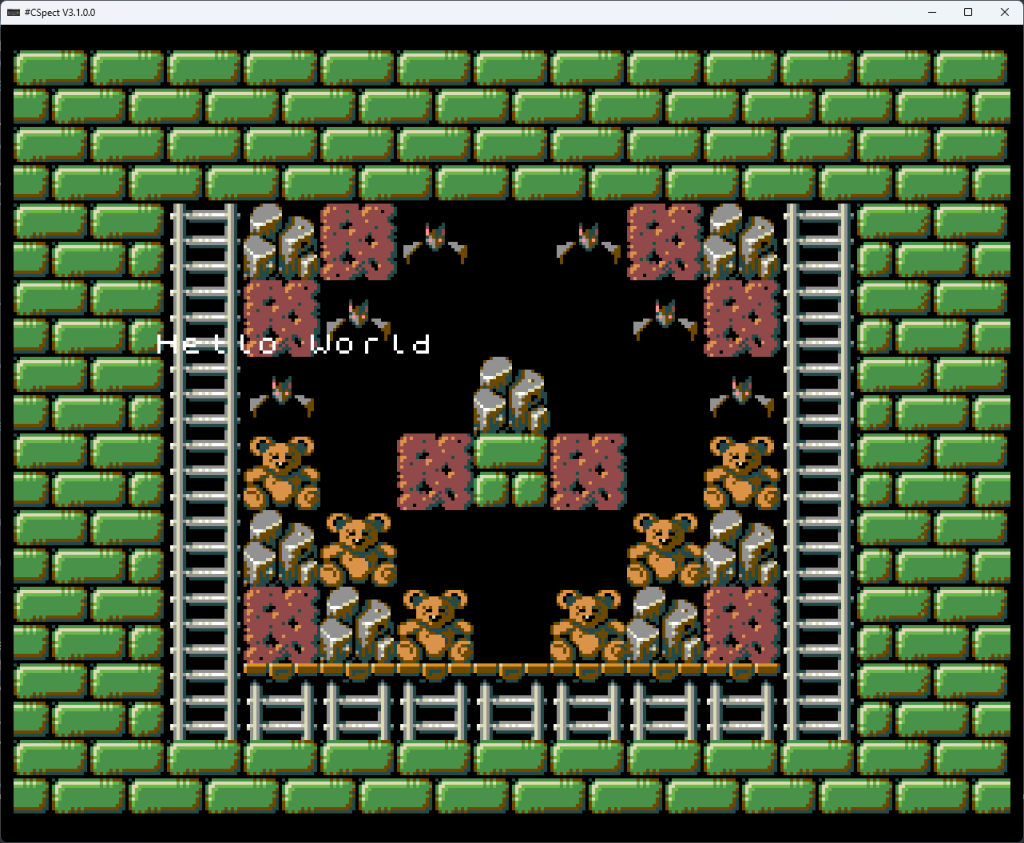 This took most of the night as I ported the code from C# over to the z88dk “C” as it’s a little picky. I did however get this going eventually and got the walls, ladders and dirt all working. Rocks are single items and just go in, as are the Bears/Bats.