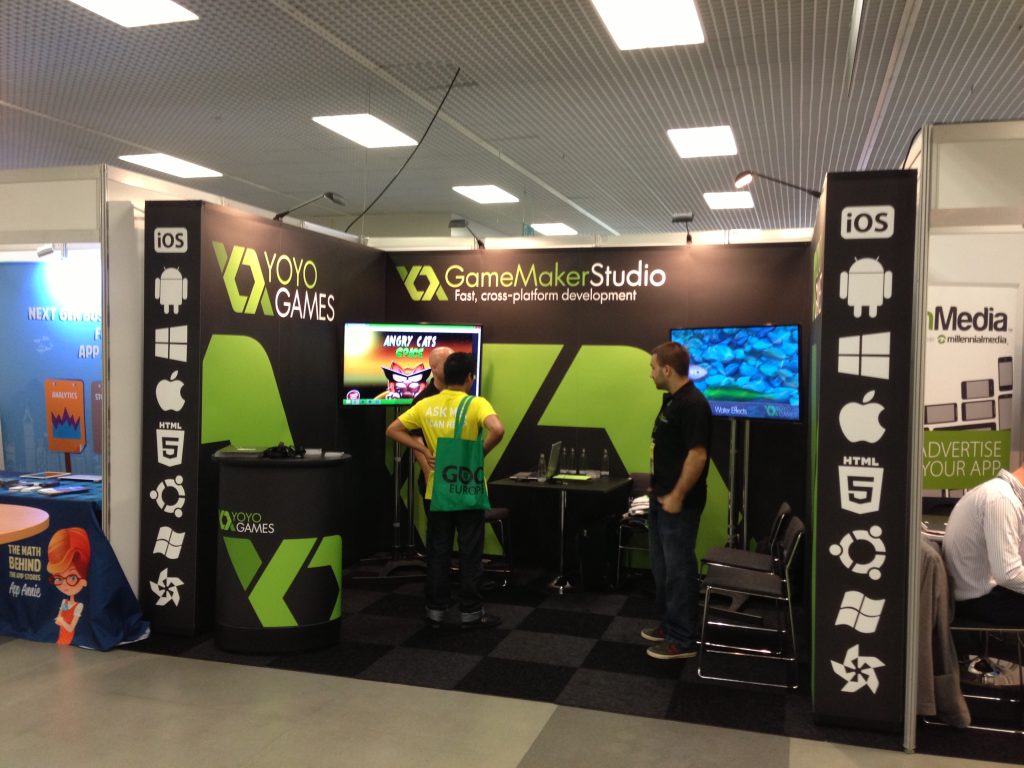Sandy decided to take us to GDC Europe, he got some quick and dirty banners printed and we all went out to try and sell the latest GameMaker HTML5 to the masses!