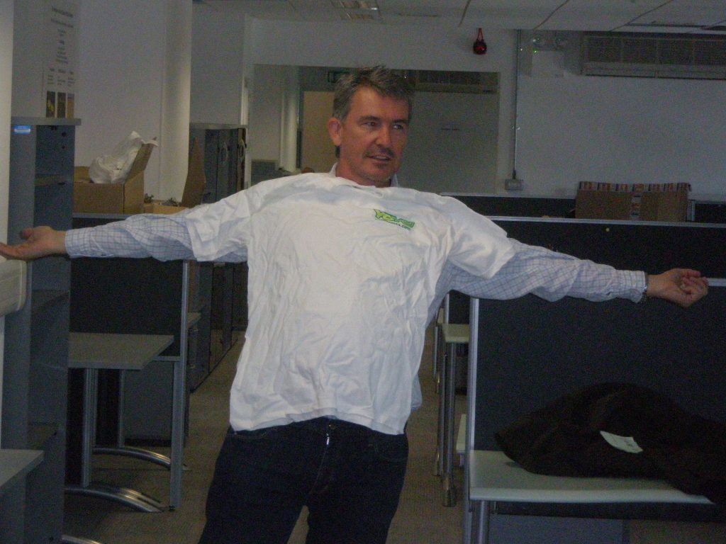 The early years of YoYo were by far the best, it was a family, and Sandy was the daddy. he looked after us all, from bringing in developers to the office to help them get started, to giving others a safe, secure place to work from. The fun and games we had every day was something I’ll always look back fondly on. These 2 pictures for me, sum Sandy up to a tee. The serious, hard working side – the visionary, and the fun piss taking side who’s always up for a laugh and a party.